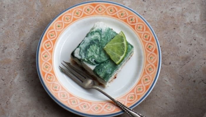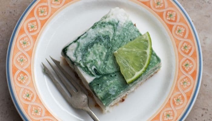 6. The next morning, remove from the tray and cut into 9-12 even pieces. Garnish with a small slice of lime and a sprinkle of coconut.Ā