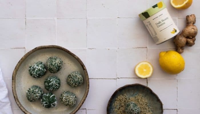 These no-bake Super Green Collagen Balls are packed with organic protein, super greens, collagen and glow-boosting nutrients. Zesty, nourishing, and naturally sweet, theyāre the perfect grab-and-go snack to keep you feeling good from the inside out!