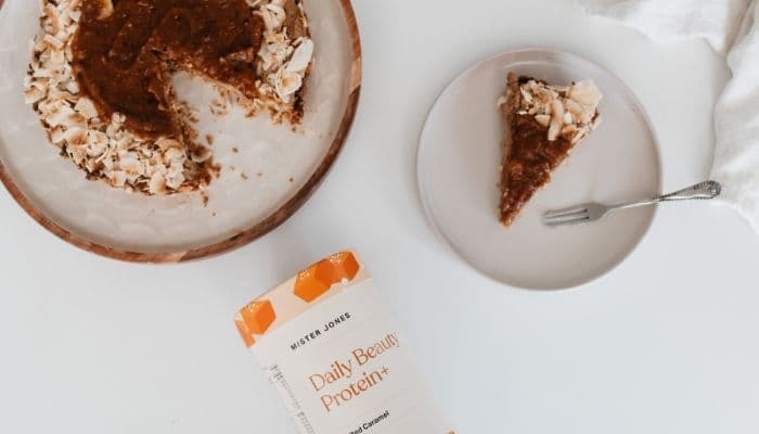 Decadent meets nourishing in this Salted Caramel Protein Tart. A a gluten-free, dairy-free treat made with wholesome ingredients and a protein boost from Mister Jones Salted Caramel Protein. With a golden almond crust, creamy coconut filling, and a naturally sweet date caramel topping, it’s the perfect make-ahead dessert that feels indulgent while supporting your wellness goals.