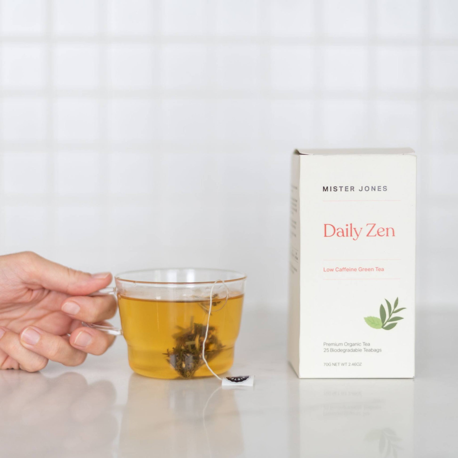 A refreshing green tea with a modern twist, Daily Zen Tea combines mellow sencha green tea with gynostemma and tulsi for a gentle lift. Crafted with organic ingredients, this low-caffeine blend offers a clean and herbaceous flavour profile.