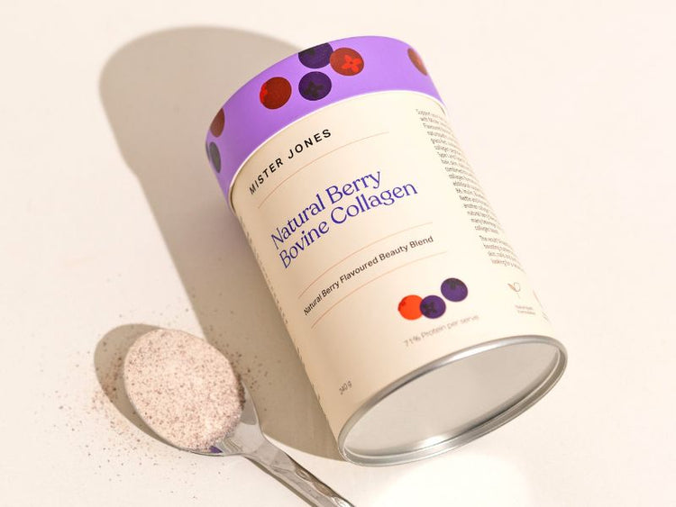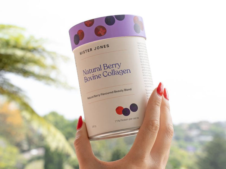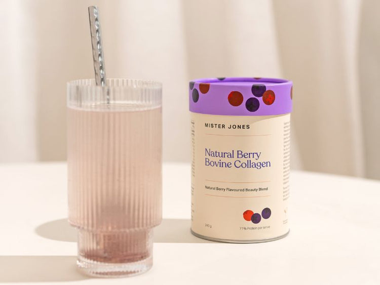 Your daily beauty booster: formulated with 5,000 mg hydrolysed grass-fed bovine collagen peptides, antioxidants, and essential nutrients to support glowing skin, healthy hair, strong nails, and joint health— all in our refreshing Bovine Collagen Natural Berry powder.