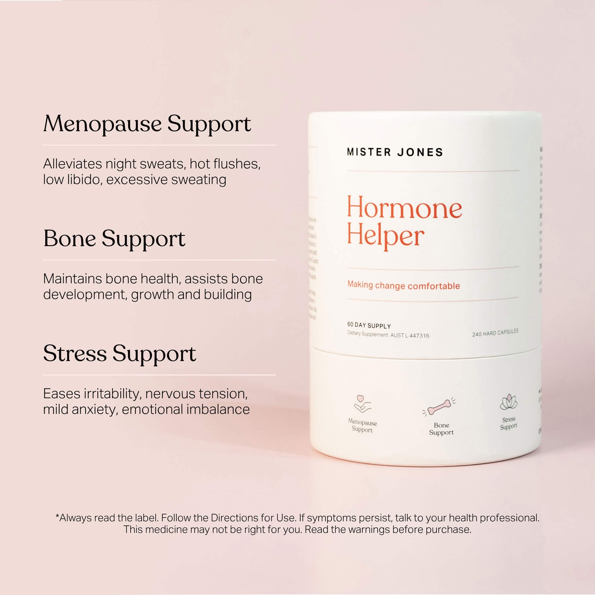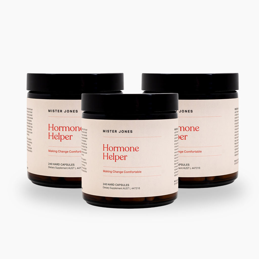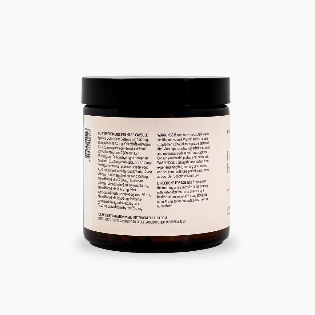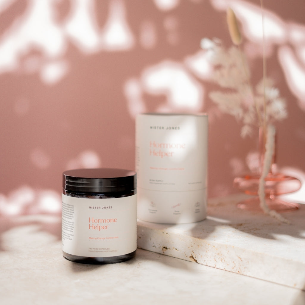 Your helping hand through the tides of change: a naturopath-formulated, evidence based blend of vitamins, minerals, and traditional herbal medicines designed to support your mind, body, and being through perimenopause and beyond — all in our Hormone Helper menopause support capsules.